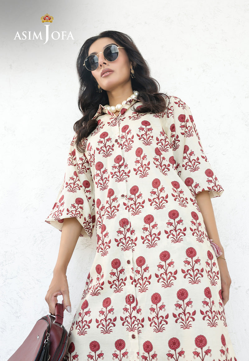 In a graceful cream palette, this ensemble is both refined and refreshing. The shirt boasts a beautiful print in a contrasting hue, while the foliage-printed trousers create a nature-inspired harmony — a serene yet striking look for any day.